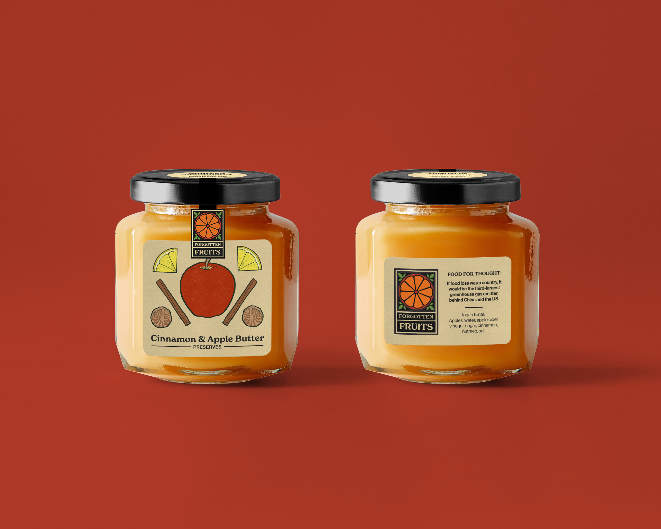 Forgotten Fruits is a theoretical specialty food brand dedicated to feeding people, not landfills. Partnering with local grocery stores, farms, and food manufacturers in the greater Philadelphia area, they aim to help tackle food excess and give purpose to forgotten produce by redistributing it as preserved products such as jams, juices, and candies.